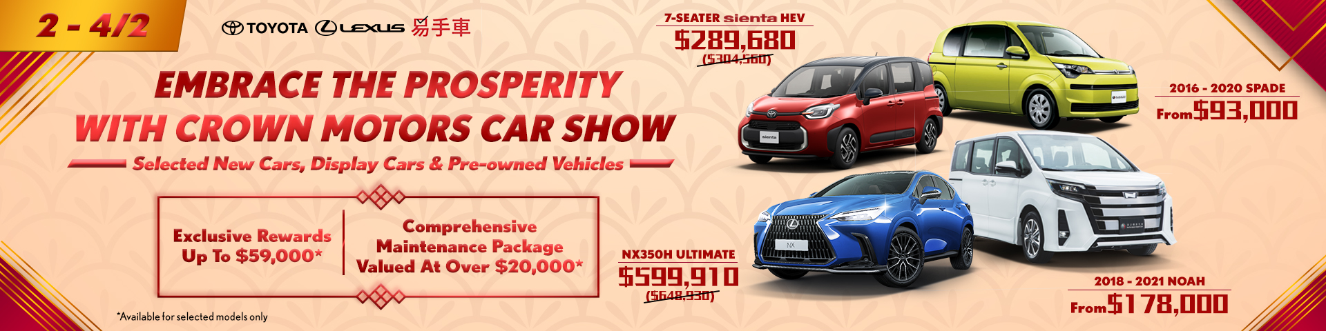 Explore exclusive offers on new vehicles, display cars, and pre-owned vehicles presented by TOYOTA, LEXUS and Inchcape Used Cars. Embrace the Year of the Dragon with selected models and enjoy a comprehensive maintenance package valued at over $20,000* and exclusive rewards of up to $59,000*. Only one unit available for some models. First come, first served!